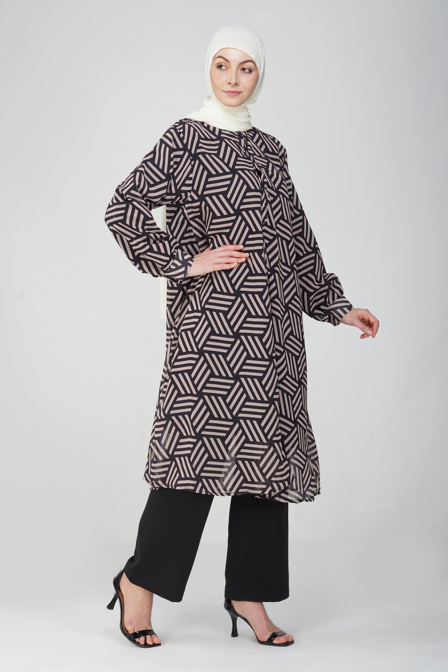 Black and white geometry long top