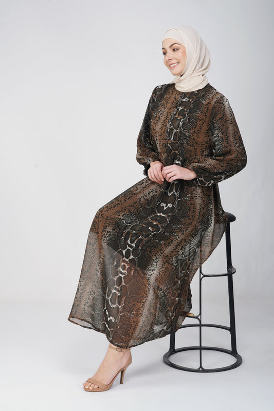 Brown snake print maxi dress